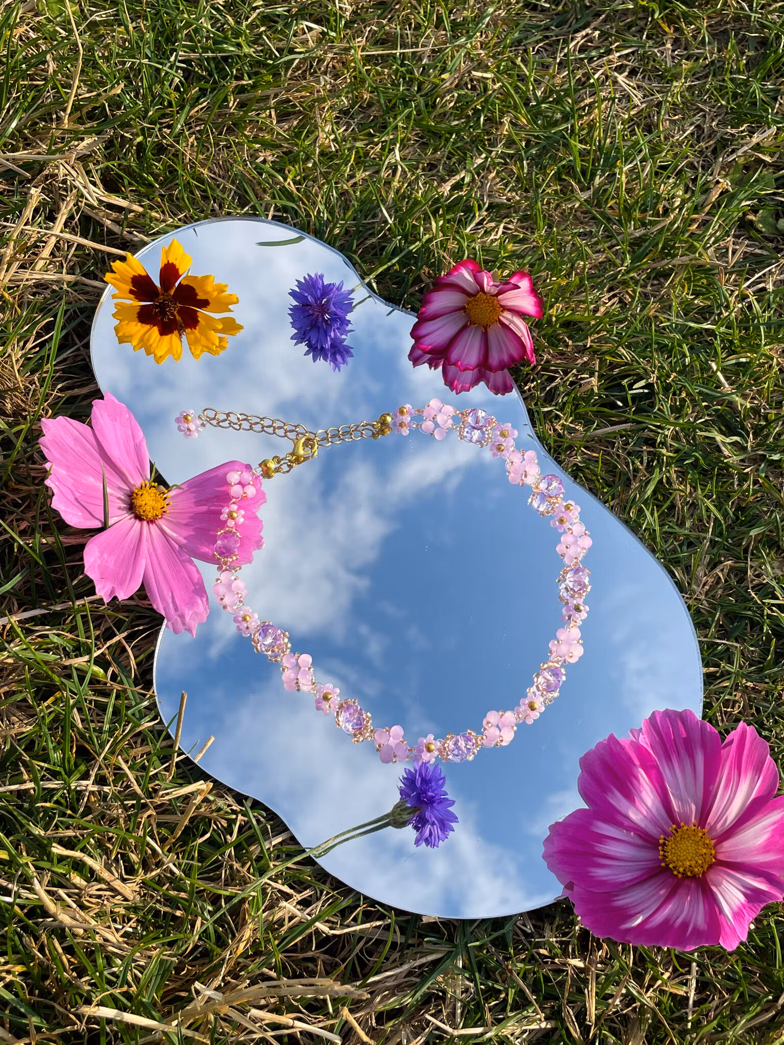Denne smukke halskæde i lilla nuancer er skabt af fine glasperler, som sammen danner en unik og sofistikeret kombination. Detaljerne er omhyggeligt udvalgt, og lås, kæde samt de delikate guldperler er belagt med slidstærkt 18 karat guldbelægning. Perfekt til enhver lejlighed, hvor du ønsker at tilføje et strejf af luksus og femininitet til dit look.